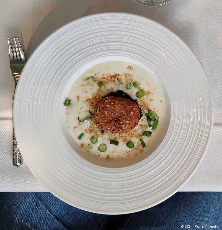 07/07/2024 @ 12:17:11 (plan)]]>"/>Starter: fried soft-boiled egg, spinach, 24-month-ripened Comté espuma ("foam").07/07/2024 @ 12:17:11 (plan)]]>