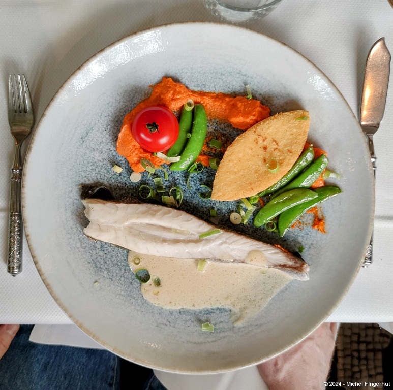 plan)]]>"/>Main dish: steamed sea bass fillet, panisse (specialty of Provençal cuisine based on chickpea flour), chickpea cream, tomato and piquillo peppers.07/07/2024 @ 12:35:04 (plan)]]>