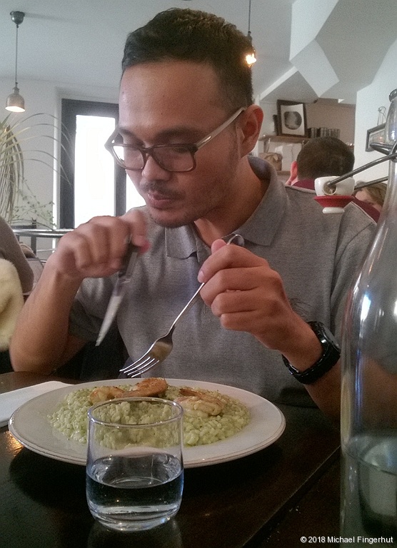 Reza at the Broken iPhone store and at La Massara.