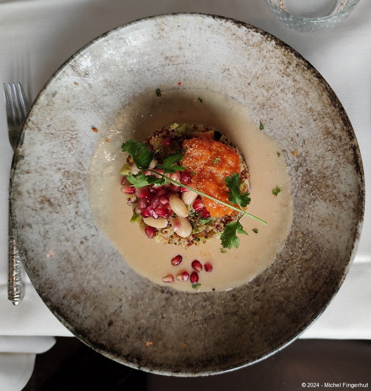 07/07/2024 @ 12:17:11 (plan)]]>"/>Starter: fried soft-boiled egg, spinach, 24-month-ripened Comté espuma ("foam").07/07/2024 @ 12:17:11 (plan)]]>