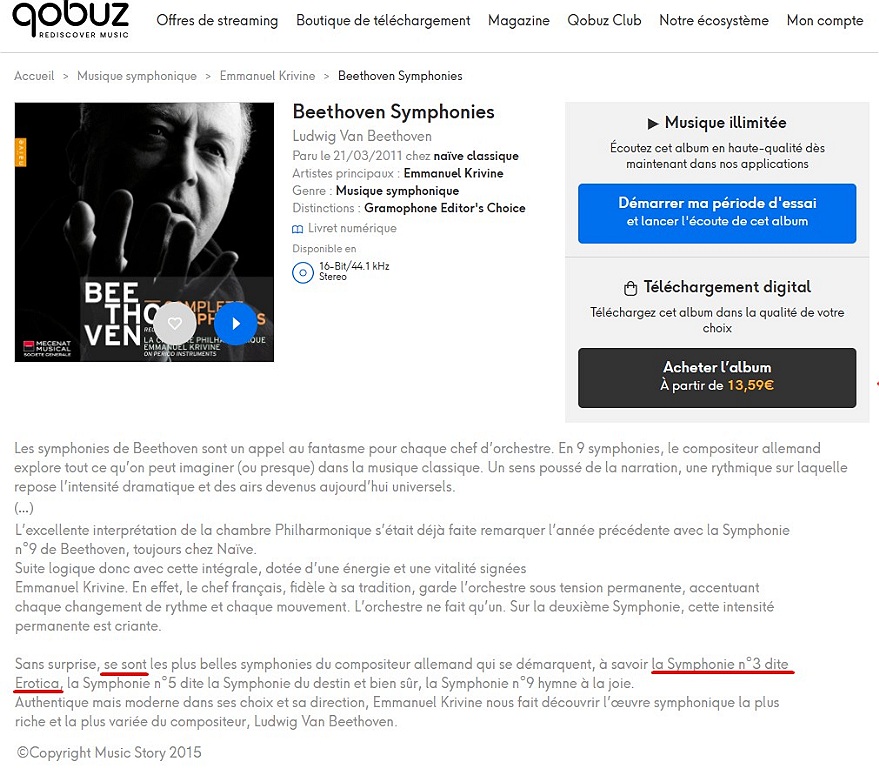 Erotica, mais c'est en fait le nom d'un film qui date de 1980 sans rapport avec cette fameuse symphonie de LvB.]]>
